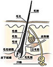 3.毛發的表面:毛發的表面是由硬的角化扁平細胞所構成。這如魚鱗狀般的紋理,由發根漸次增加密度向發梢重疊而上。所以梳理頭發是若由發根,亦即由頭皮向發梢梳的話會很順利。但若相反的,由發梢向頭皮梳的話,將會有抗拒力,且會傷毛發。夏天強烈的陽光照射,會失掉毛發大量的水份,或因大氣污染而使毛發含有大量重金屬,其他如經常燙發、染發、漂發或過度吹風,都會使毛發受到傷害,使表面干燥,沒有彈性,鱗狀紋理翻卷或缺落,而導致毛發分叉。