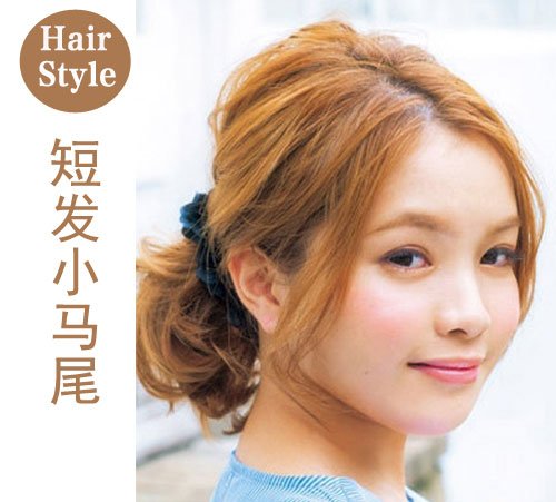 1.這是一款及肩的小短發,用手抓出馬尾,再抓發頂,制造蓬松感。