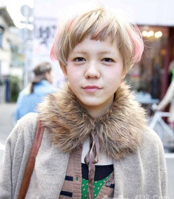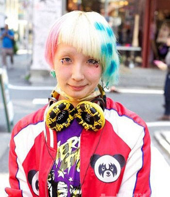 不規則的短發使MM看起來甜美可愛,短短的劉海看起來很清新,彩色的染發讓這款發型看起來很清新俏麗,絲毫沒有做作的感覺,搭配一件嘻哈氣息很強的上衣和一副大耳塞看起來時尚無比。