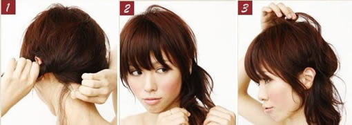 歪扎的馬尾不失女人的成熟與可愛。兩邊的不對稱則可以轉(zhuǎn)移眾人的視線。