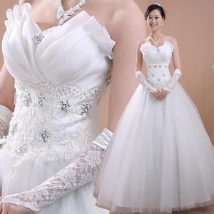 公主型婚紗的特點:層層沙+蓬蓬裙,使新娘看起來活潑可愛又不失小女人的乖巧。這種款式適合多種體型的mm。