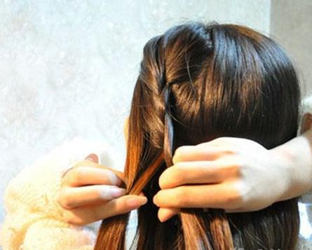 step1:先把頭發梳理整齊,然后從后面把頭發分成兩半。