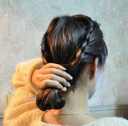 step2:先把一側的頭發拿起來,按自己的喜好順序左右隨意。