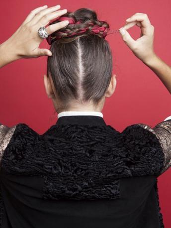 把兩邊的辮子交替編成一個(gè)發(fā)髻,可以自由編成你想要的形狀,最后用發(fā)夾固定住就完成咯!