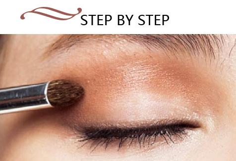 使用珠光不明顯的棕色眼影霜打眼窩,從眼褶上方向上推到眼窩位置。