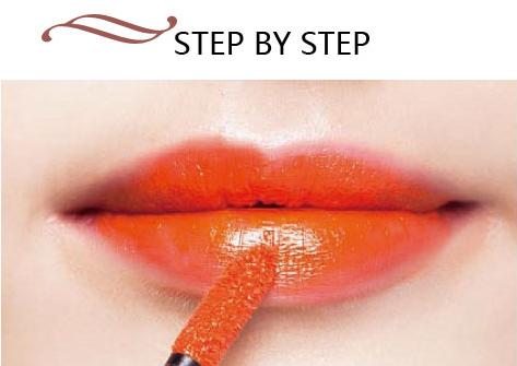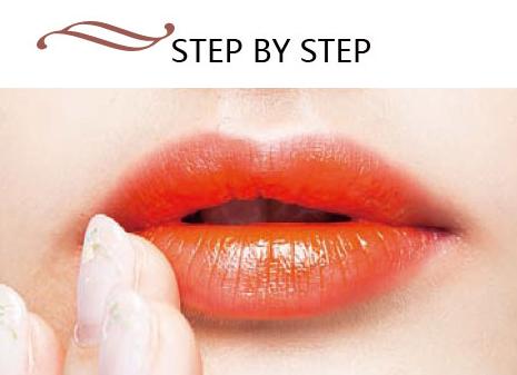 從內(nèi)向外涂抹上色,唇部外緣先留白,不要將唇膏涂滿。