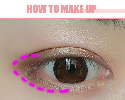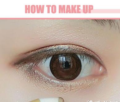 步驟三:眼皮偏上和眉骨處,用閃亮的淺色來提亮,在昏暗的燈光下,閃爍的光芒會讓你在眾人中脫穎而出。