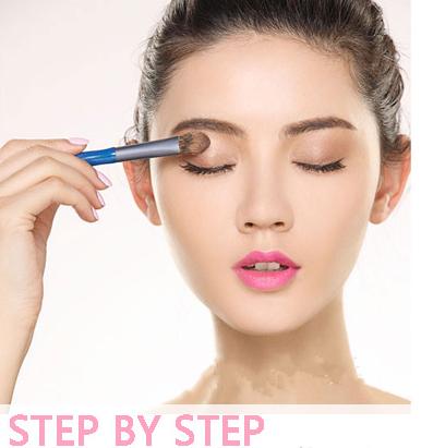 褐色系眼影永遠是秋冬的第一選擇,不會過分耀眼,卻能為整個妝容增加層次。將淺褐色眼影填滿眼窩,并延涂到眉毛部分。