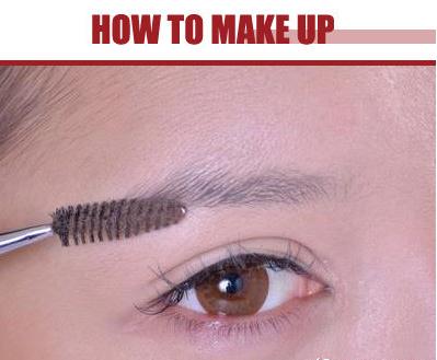 STEP6:有了完整的美型,眉毛的顏色和光澤度也是關(guān)鍵,最后用棕色的染眉膏把眉毛均勻上色,同時梳理眉毛。