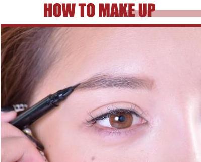 STEP5:完整的眉形缺少精致的外輪廓,用灰棕色眉筆強(qiáng)調(diào)眉形,眉尾處可以使用眉筆輕輕帶過,適當(dāng)拉長眉毛的長度可以讓臉型變小。