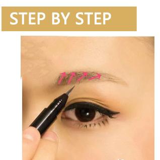 大概輪廓確定后,就用水眉筆在這個范圍內對眉毛進行填色,填色方式是順著眉毛生長的方向一筆筆描畫,這樣出來的眉毛才自然。