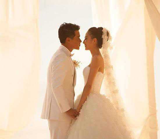 佟麗婭陳思成結婚宣誓的一瞬間,佟麗婭微卷的長卷發浪漫清純,而此刻將發絲盤成發髻,嬌俏精致的面容充滿了幸福氛圍,漂亮的白色頭紗垂落于婚紗,漂亮的花色象征著純凈圣潔。