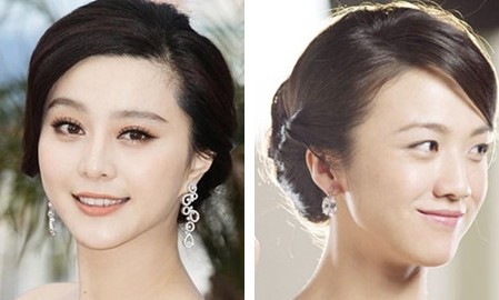 優雅端莊的公主式盤頭讓女神的氣質一下子凸顯出來,沒有劉海遮擋的冰冰更顯雍容大氣,而側分頭發的一綹劉海則是給湯唯端莊的造型平添了一分俏皮。