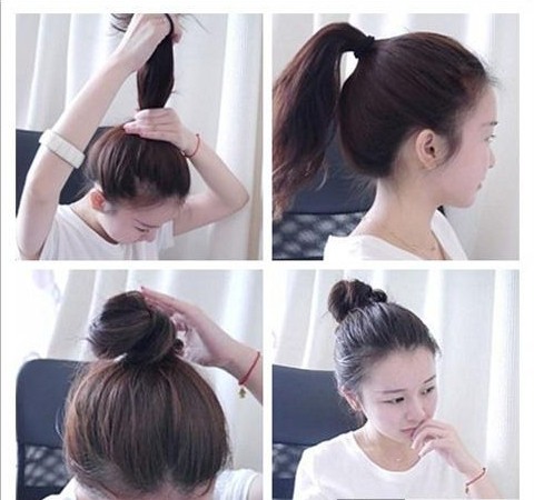 STEP3:然后把馬尾辮提起來,順時針扭轉起來,形成一個丸子的形狀出來。