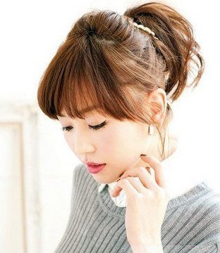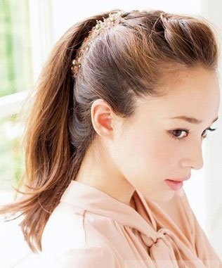 馬尾一直是非常受歡迎的扎發(fā)發(fā)型,但是也有些MM覺得馬尾過于單調(diào)。如果是這樣,不妨像這款發(fā)型一樣,將劉海扭轉(zhuǎn)出飽滿的造型,增添發(fā)型的造型感,而且還能拉長(zhǎng)身高。最后用長(zhǎng)發(fā)夾把馬尾固定,甜美指數(shù)爆表。