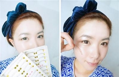 第三步:選擇自然纖長的假睫毛,涂上膠水,在眼角兩個端點輕輕按壓5秒即可。