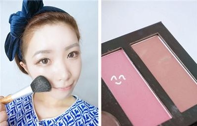 第四步:將粉色的腮紅打在笑肌上,打造清透的好氣色。