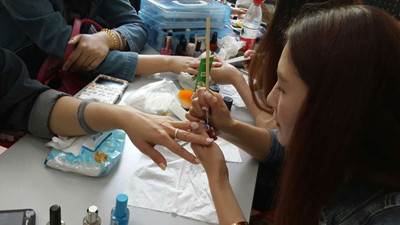 由上海新東坊形象藝術培訓學校-美甲培訓老師秦泓帶領學員現場培訓指導,提供就業來訪人員現場體驗美甲培訓和美甲技術操作演練,深受待業青年親來,對美甲行業倍感興趣,就業針對性強、有保障性,薪資穩定;現場反應良好,深受領導重視。