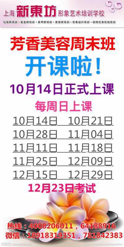 【芳香美容-周末班】9月23日報名,10月14日正式上課【政府補貼.免費培訓】每周日上課,預約報名熱線:4008206011