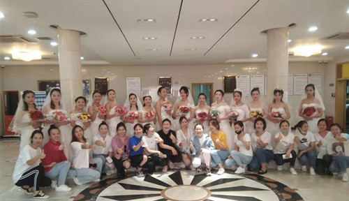參賽選手耐心細致,用手中一支筆或一支小刷子描化出一個個美美新娘。