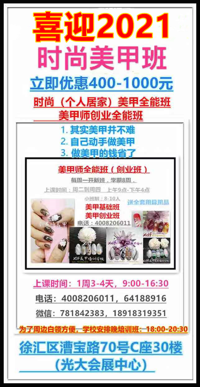 【2021迎新春學費立減】美甲師培訓;時尚美甲全能班、美甲師全能創業班;報名電話:4008206011