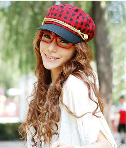 棕色長(zhǎng)卷發(fā) 棕色的長(zhǎng)款發(fā)一直到胸前,很漂亮的弧度,搭配紅色邊框的眼鏡顯得十分洋氣,加上格紋帽子也來(lái)湊熱鬧了,整個(gè)造型就更加喜慶啦!