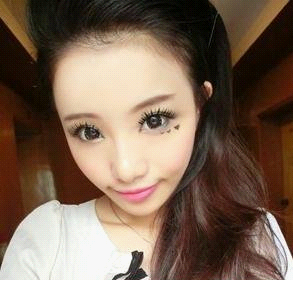 為了讓雙眼顯得更水汪汪,顯得更精神,第一步先戴上灰色的美瞳來達到放大眼球的視覺效果。