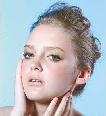 用有閃亮感覺的粉底霜涂于顴骨接近眼尾的地方,或者輕輕的掃上帶咖啡色的閃啡粉紅色胭脂。