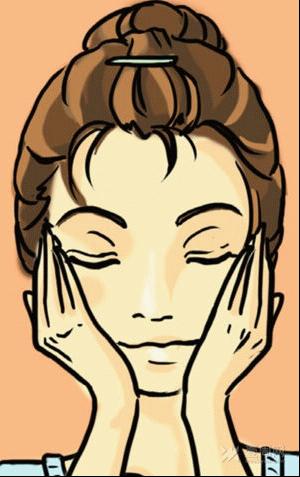 淋巴按摩step2 其余的手指覆蓋住臉頰,并用整個手掌按壓臉部
