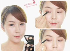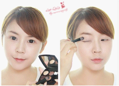 Step 3:選擇淺咖色眼影在整個(gè)眼窩處暈染。