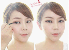 Step 6:選擇黑色的眼線筆沿著睫毛根部勾畫眼線,可適當(dāng)加粗,在眼尾處下垂平拉。