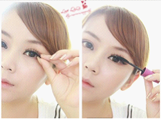 Step 7:在上睫毛處粘貼卷翹濃密的芭比型假睫毛,然后刷上睫毛膏,讓眼妝更精致。