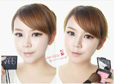 Step 8:選擇粉色系腮紅在顴骨處以斜刷的方式暈染。