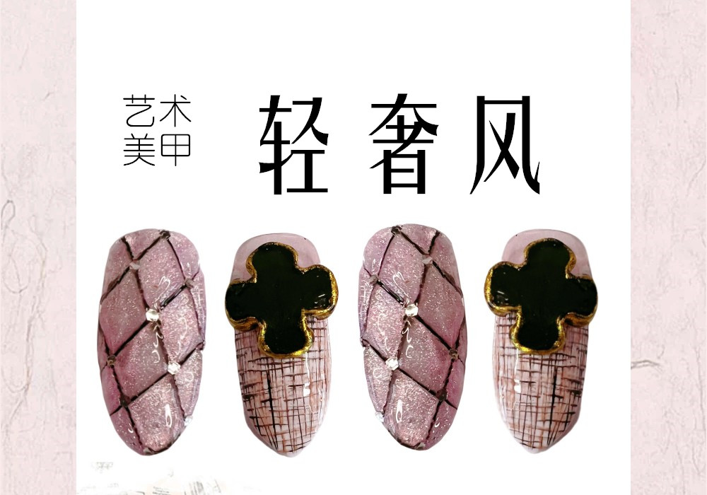 3、淺貼片水晶甲,幾何類指甲彩繪(一)