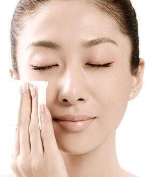 將濕卸妝棉片墊在下眼瞼上,用棉簽蘸取眼部卸妝液由睫毛根部向睫毛梢滾動擦拭。